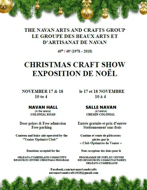Admission is free but donations will be accepted for the Orléans-Cumberland Community Resource Centre Christmas Program. There will also be door prizes & free parking.