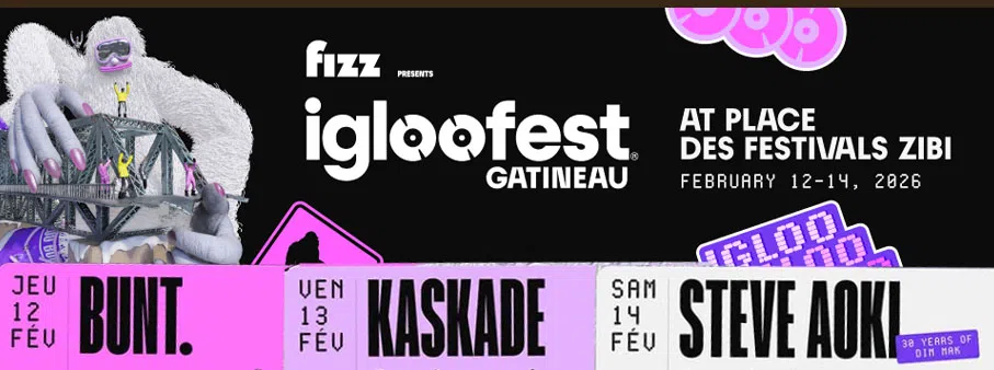 Igloofest is an EDM festival returning to Gatineau February 12-14 2026! Featruing performers like Steve Aoki, Bunt, and Kaskade, and MORE! Get ticket susing the link above or by clicking HERE.